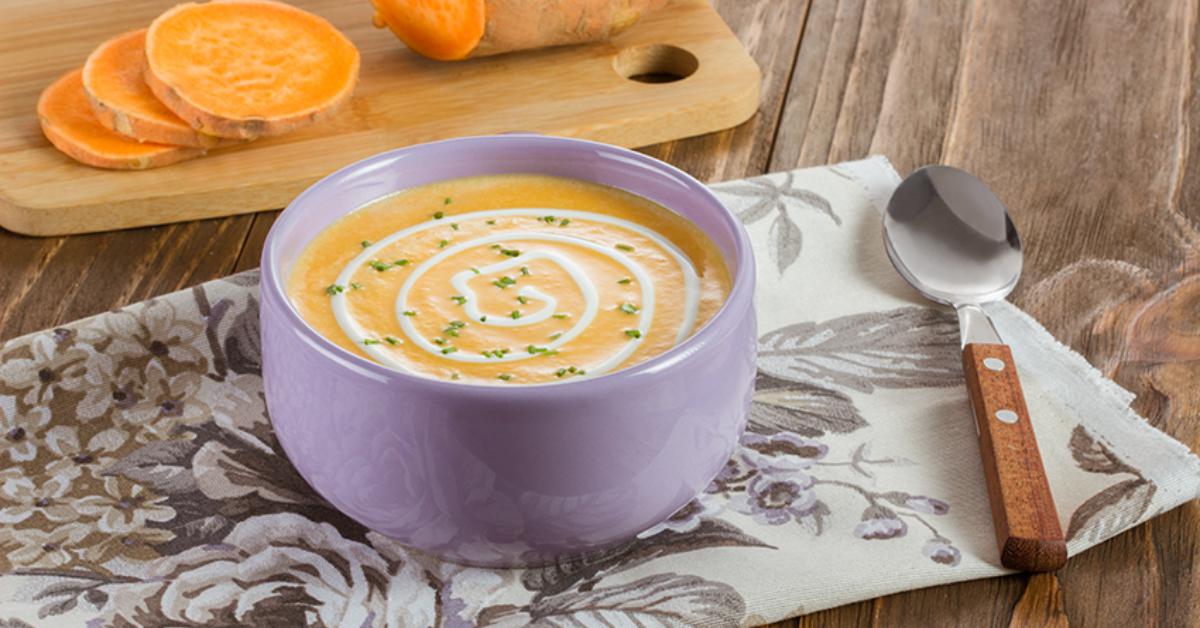 Licúa la mezcla de cebolla con el camote, el caldo, NESTLÉ® Media Crema, la leche evaporada, el agua y la nuez moscada. Calienta durante 5 minutos a fuego lento o hasta que espese un poco.